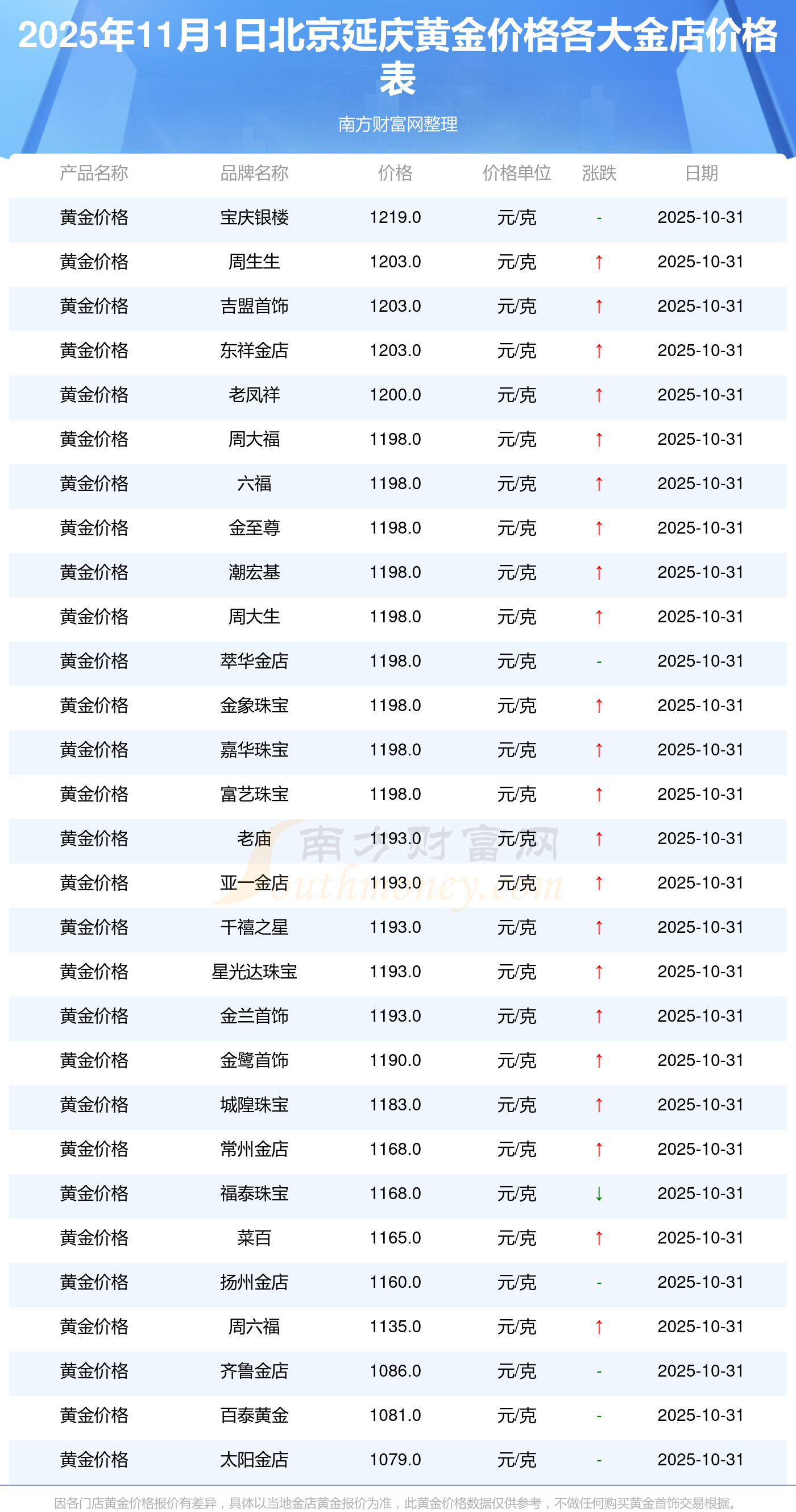 今天是2025年11月1日,北京延慶周大福、周大福、周大福、周大福、周大福、周大福、周大福、老鳳祥、老鳳祥、老鳳祥、周六福等各大金店品牌黃金價(jià)格最新價(jià)格行情是這樣的:周大福1198.0元/克、周大福650.0元/克、周大福1198.0元/克、周大福44660.0、周大福18640.0、周大福40080.0、周大福1058.0元/克、老鳳祥1200.0元/克、老鳳祥560.0元/克、老鳳祥1200.0元/克、周六福1135.0元/克。