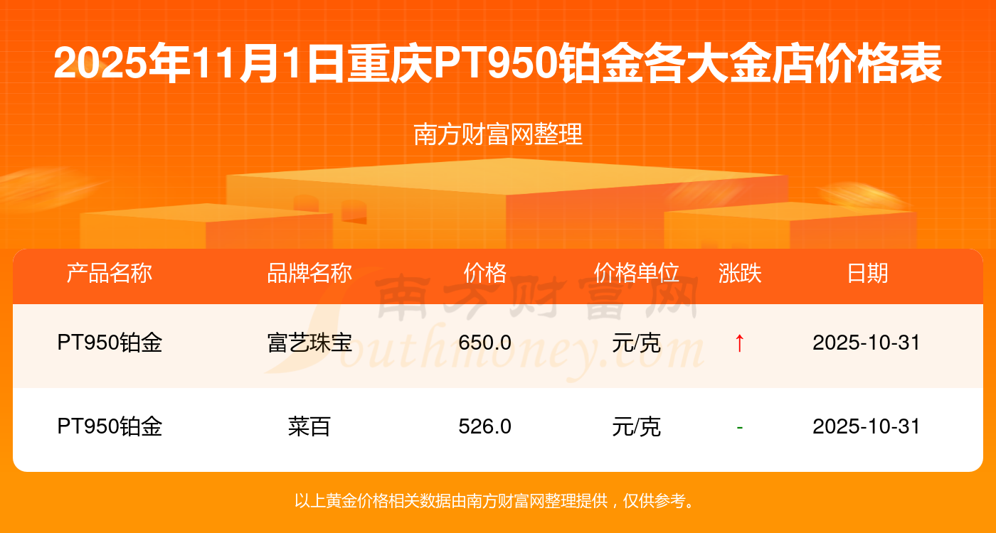 一、重慶各金店P(guān)T950鉑金價格是多少錢?2025年11月1日重慶各金店P(guān)T950鉑金價格匯總