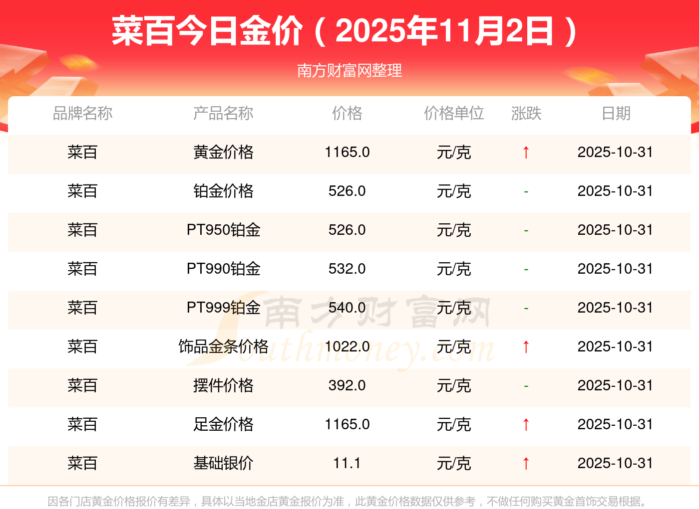 2025年11月2日菜百黃金今日價格多少一克_菜百金價實時行情來了,一起來看看吧!