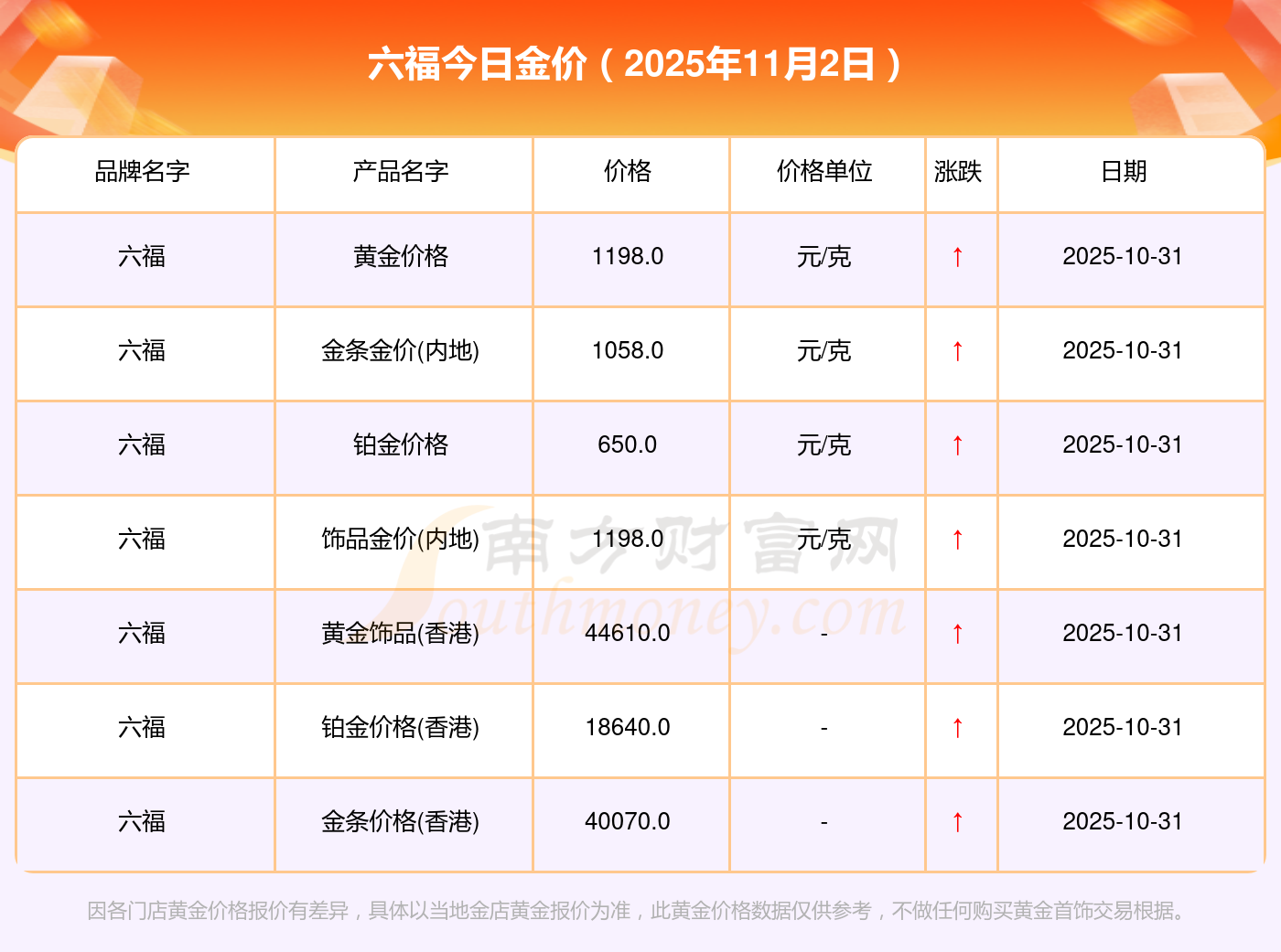 2025年11月2日六福金條多少錢(qián)1克 現(xiàn)在青島六福黃金價(jià)格查詢(xún)