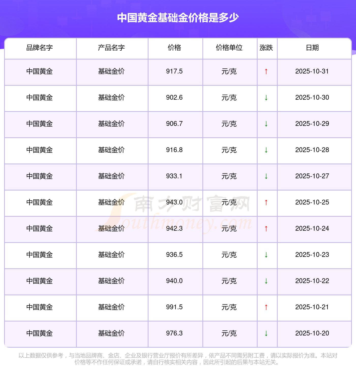 2025年11月2日中國黃金今日基礎(chǔ)金價格查詢(基礎(chǔ)金價今日多少一克),一起來看看吧!