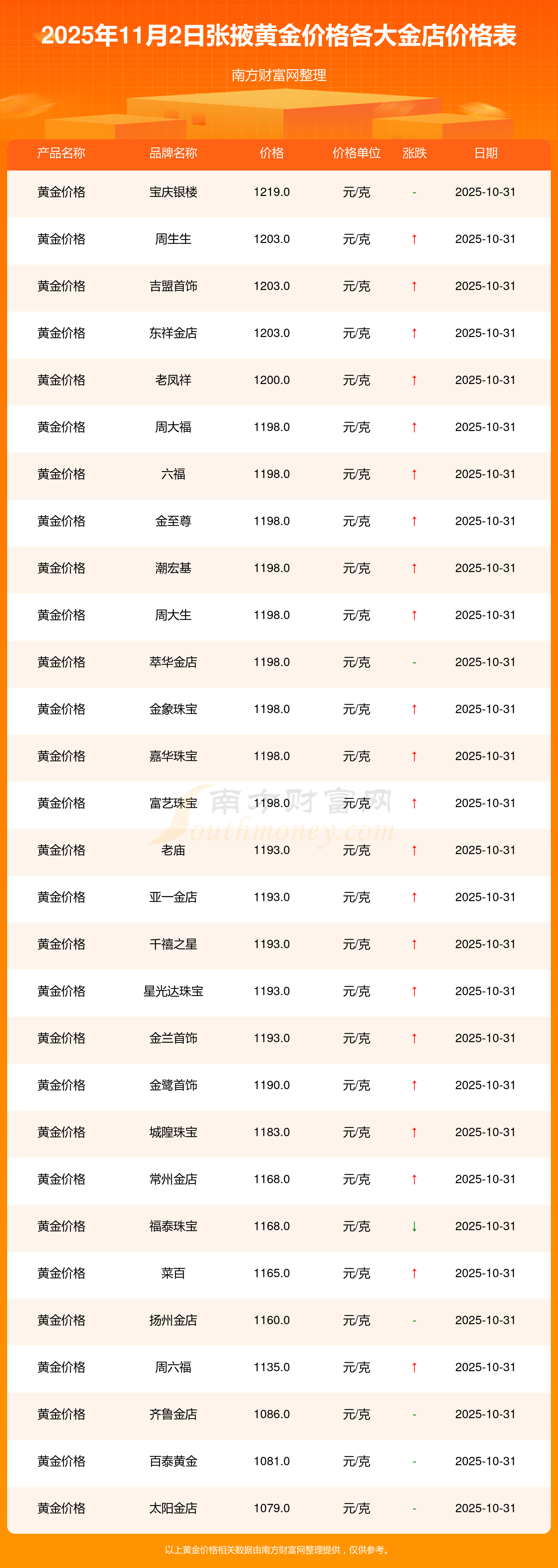 2025年11月2日張掖各大金店黃金價格一克多少錢_金子價格今天價格查詢