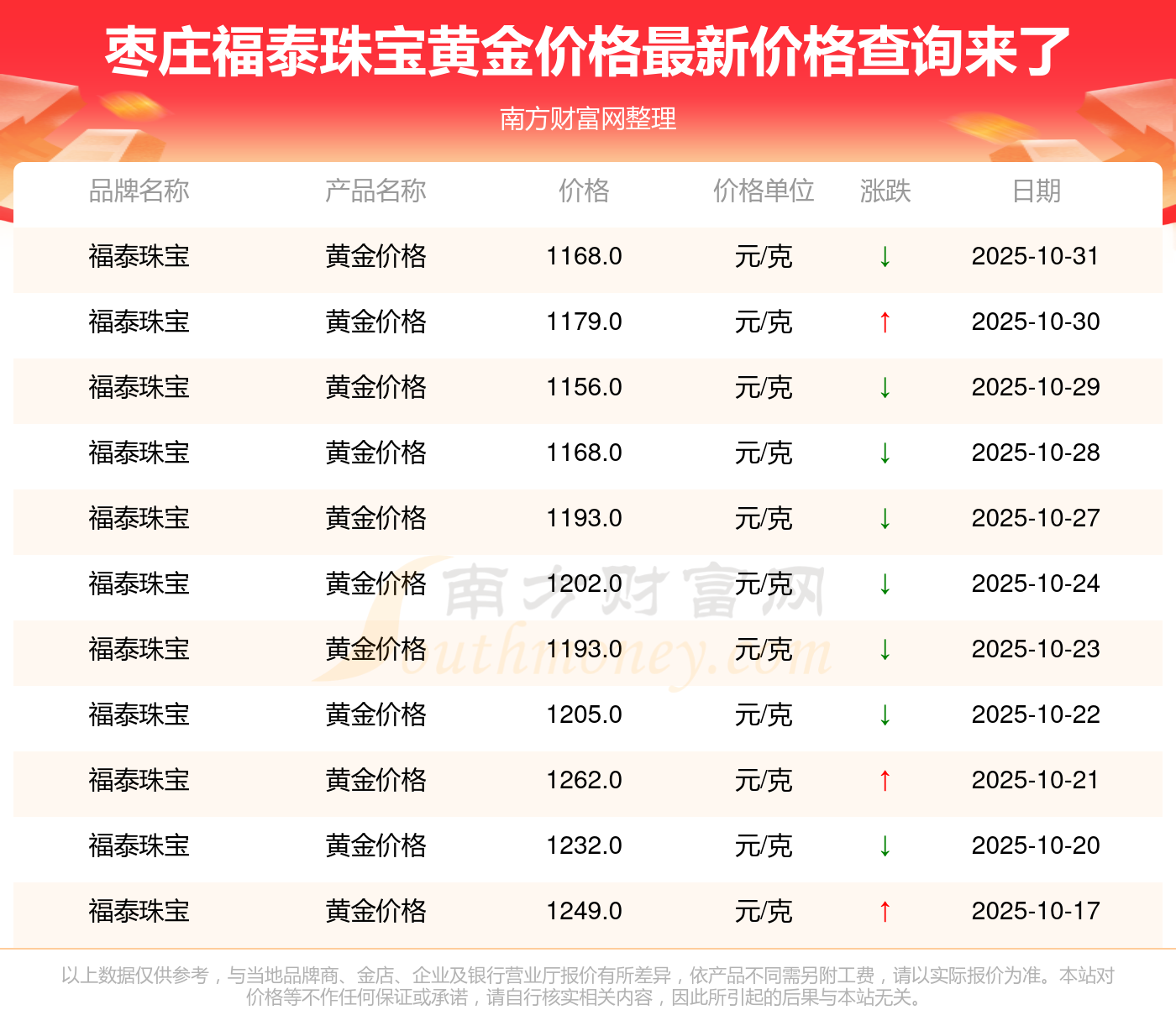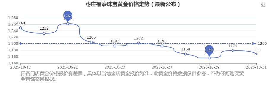 2025年11月2日,棗莊福泰珠寶所售黃金價格,其價格設(shè)定為 1168.0元/克。