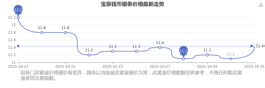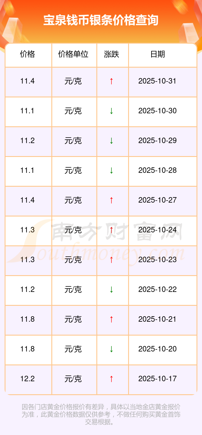 今日寶泉錢幣 銀條價(jià)格最新的市場(chǎng)標(biāo)價(jià)為11.4元/克。