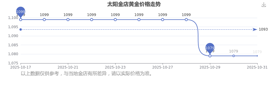 今天黃金價位怎樣?當(dāng)下一克黃金的價格為多少?黃金價格一般是多少錢一克?今日(2025年11月2日)太陽金店黃金價格是1079.0元/克。