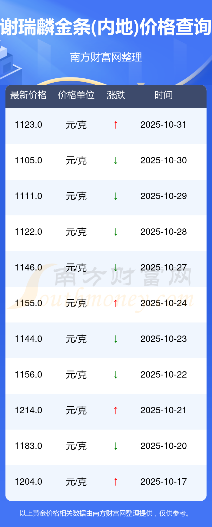 以上數(shù)據(jù)僅供參考,與當(dāng)?shù)仄放粕、金店、企業(yè)及銀行營業(yè)廳報價有所差異,依產(chǎn)品不同需另附工費,請以實際報價為準(zhǔn)。本站對價格等不作任何保證或承諾,請自行核實相關(guān)內(nèi)容,因此所引起的后果與本站無關(guān)。