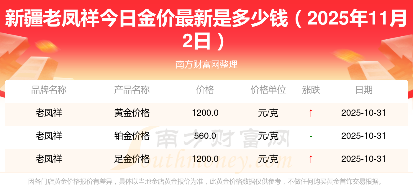 現在新疆老鳳祥黃金價格表_新疆老鳳祥黃金多少錢一克(2025年11月2日)