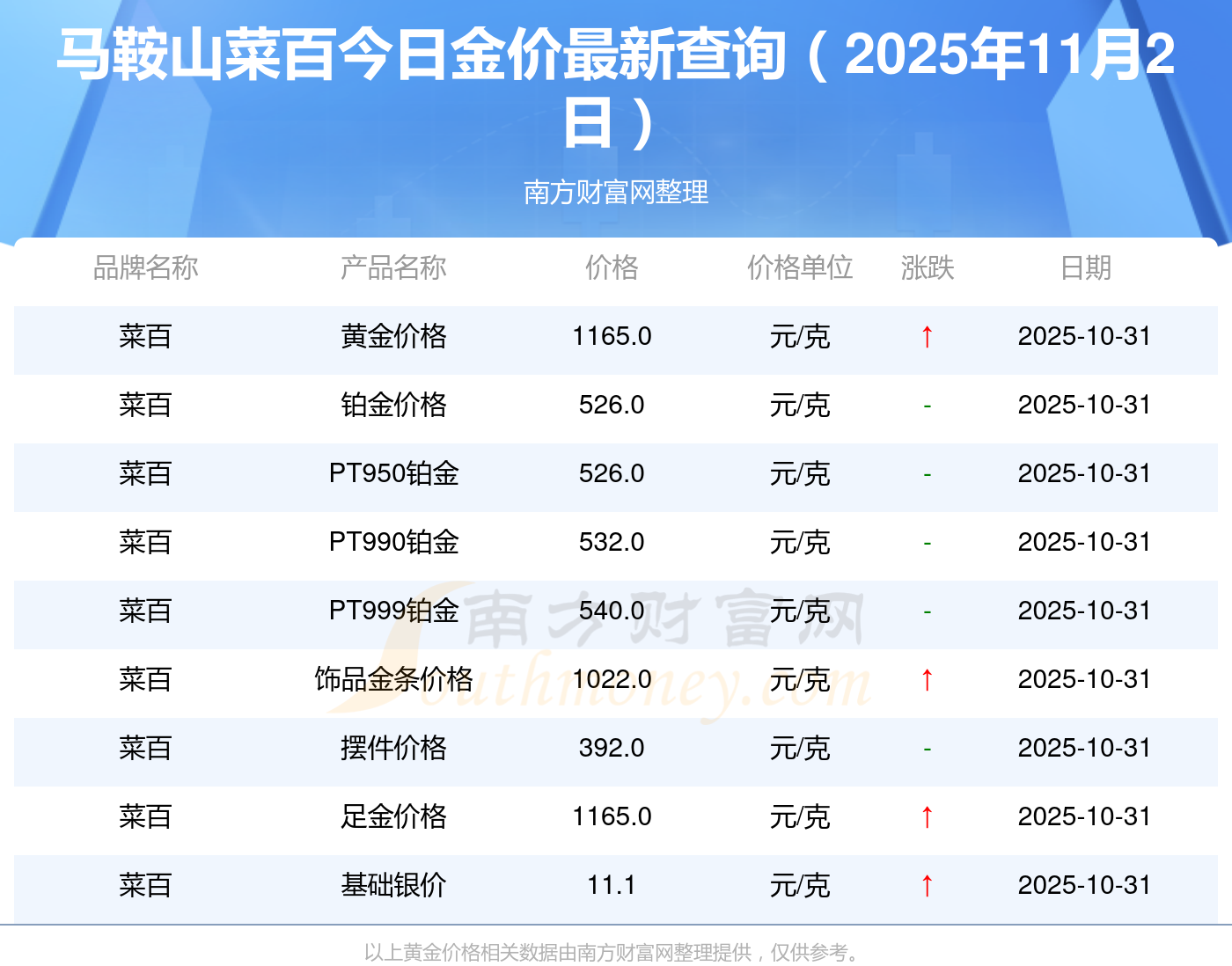 馬鞍山菜百金價(jià)今日價(jià)格: