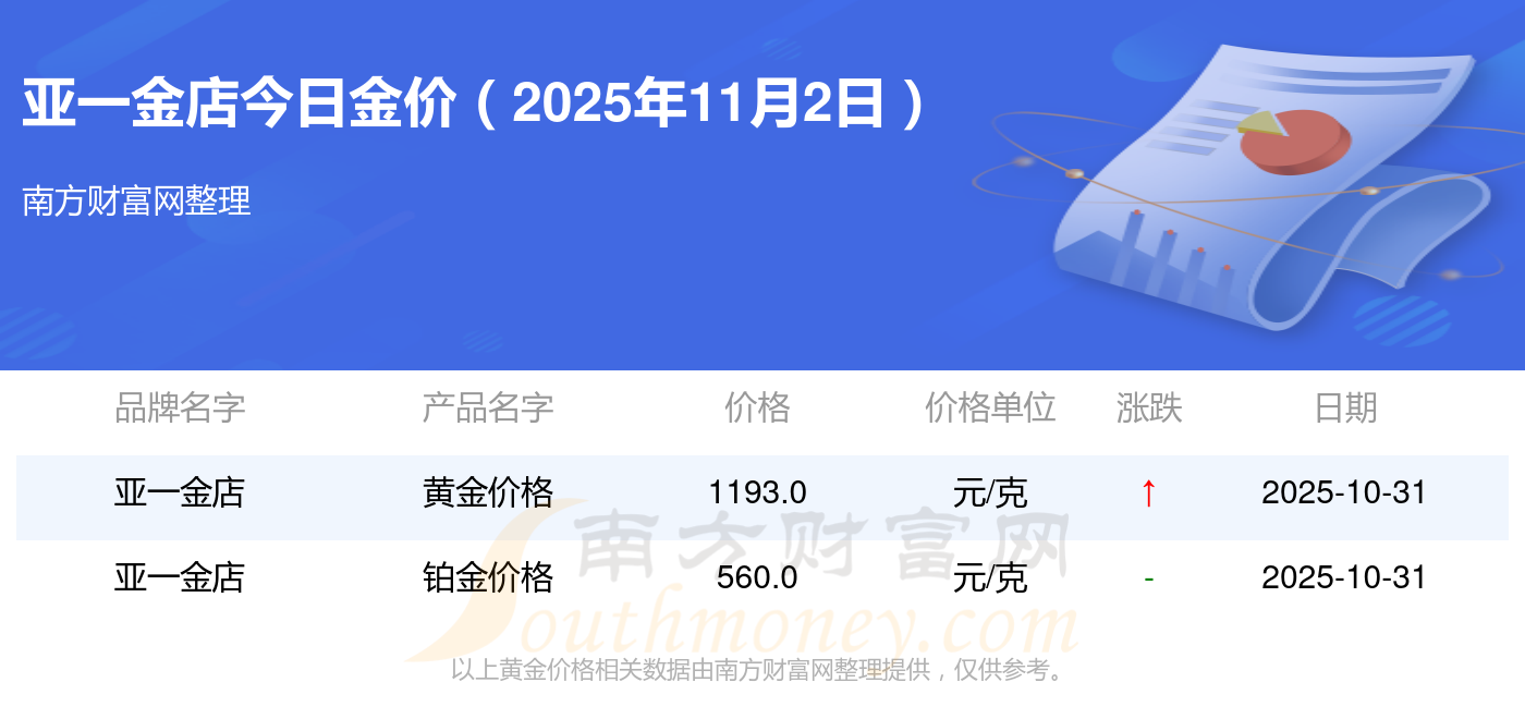 現(xiàn)在亞一金店黃金價格是多少錢1克_2025年亞一金店今日金價是多少錢一克,最新亞一金店查詢,2025年11月2日亞一金店黃金價格現(xiàn)在每克多少錢?最新亞一金店黃金價格報價公布,一起來看看吧!