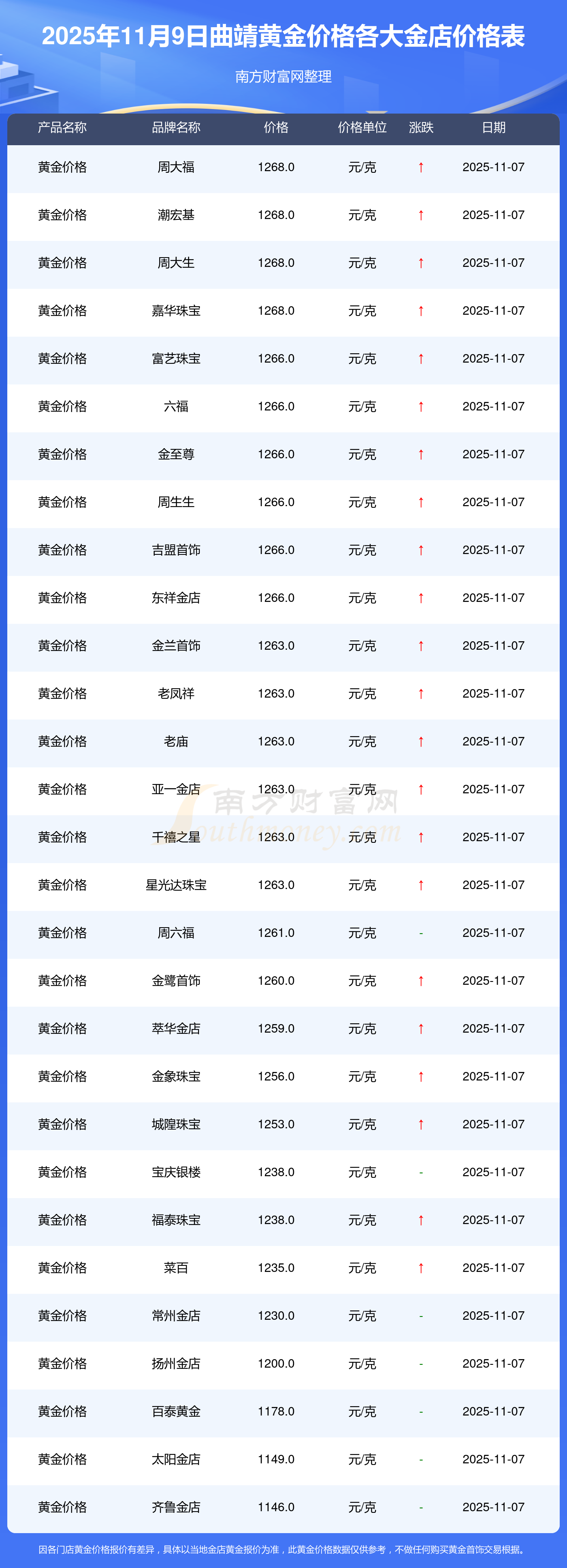 一、曲靖各金店黃金價(jià)格表最新是多少錢,今天,黃金的克價(jià)是多少,最新的黃金一克價(jià)格表單,能否提供
