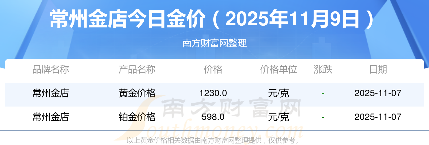 2025年11月9日寶泉錢幣、金蘭首飾、金蘭首飾、謝瑞麟、謝瑞麟、謝瑞麟、謝瑞麟、謝瑞麟、金銀街、金銀街、金銀街等各大金店品牌黃金價格最新價格如下:寶泉錢幣銀條價格11.4元/克,金蘭首飾黃金價格1263.0元/克,金蘭首飾鉑金價格560.0元/克,謝瑞麟金條價格(內(nèi)地)1202.0元/克,謝瑞麟金飾價格(內(nèi)地)1268.0元/克,謝瑞麟黃金飾品(香港)44260.0,謝瑞麟鉑金飾品(香港)13080.0,謝瑞麟金條金價(香港)39960.0,金銀街投資金條1243.0元/克,金銀街工藝金條1258.0元/克,金銀街千足金首飾1248.0元/克。