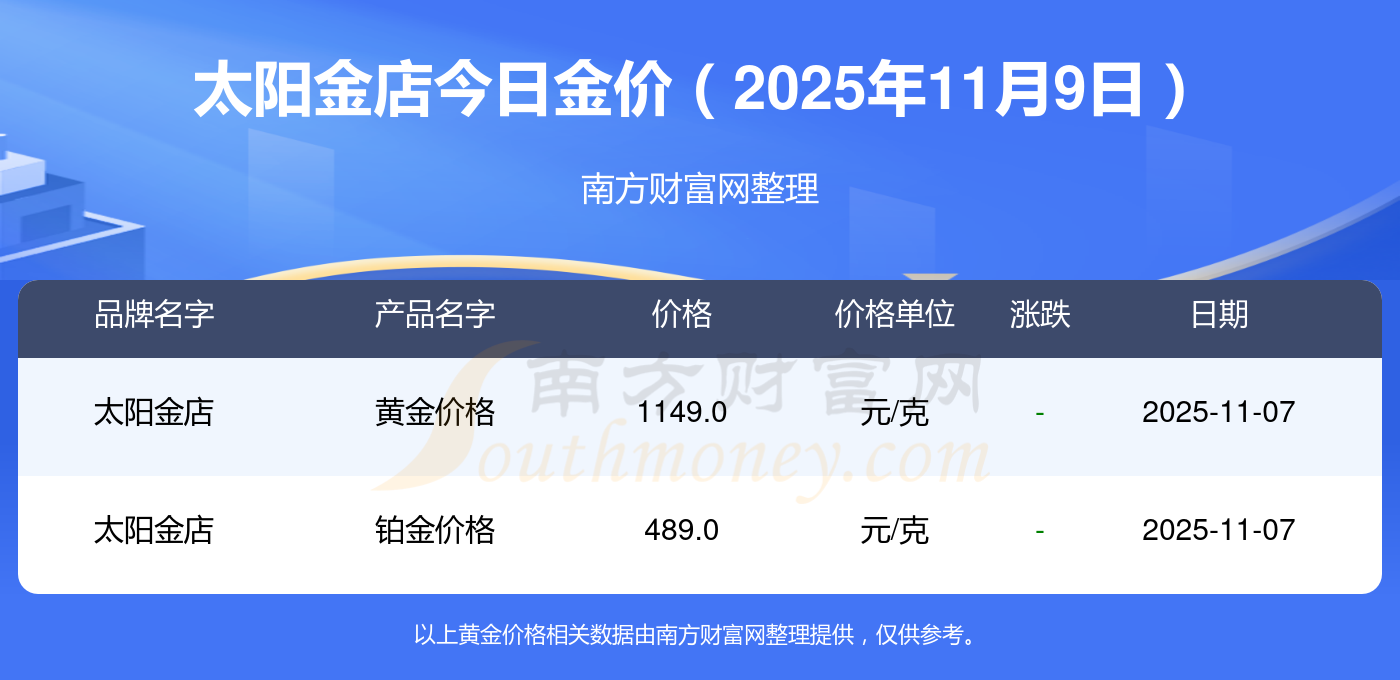 太陽金店今天的黃金價(jià)值幾何?詳情如下: