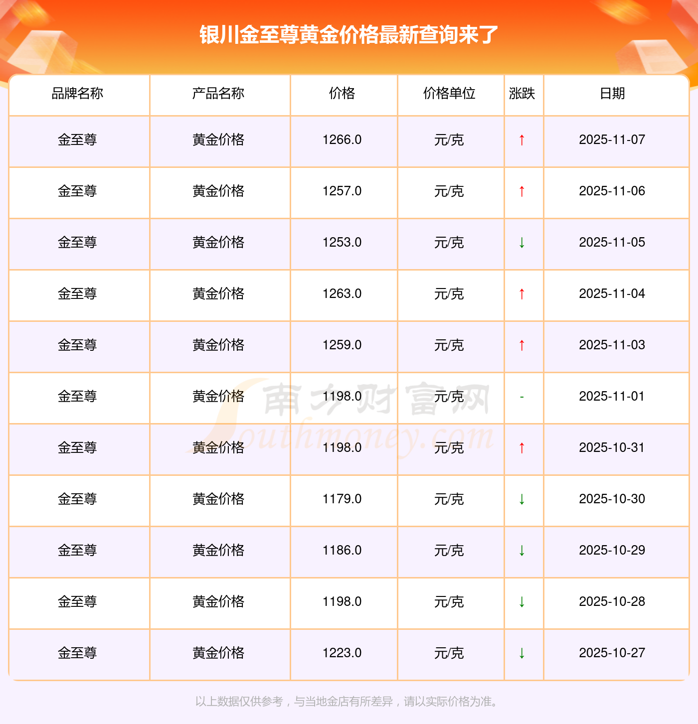 今日銀川金至尊黃金價(jià)格為1266.0元/克。