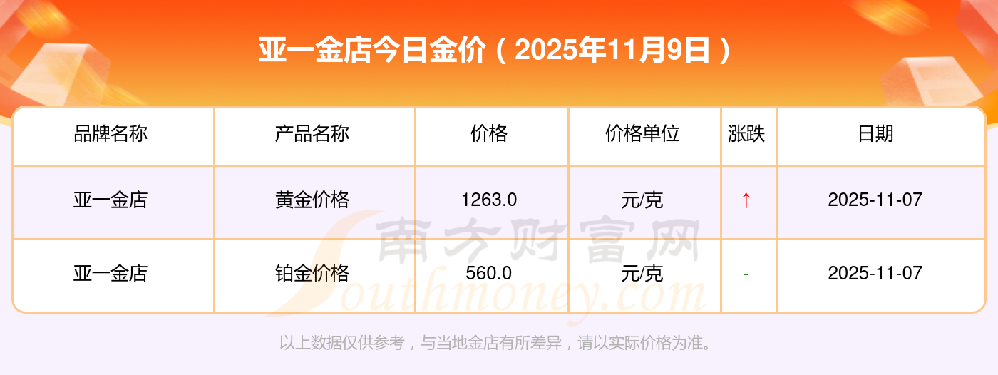 亞一金店今天的黃金價(jià)值幾何?詳情如下: