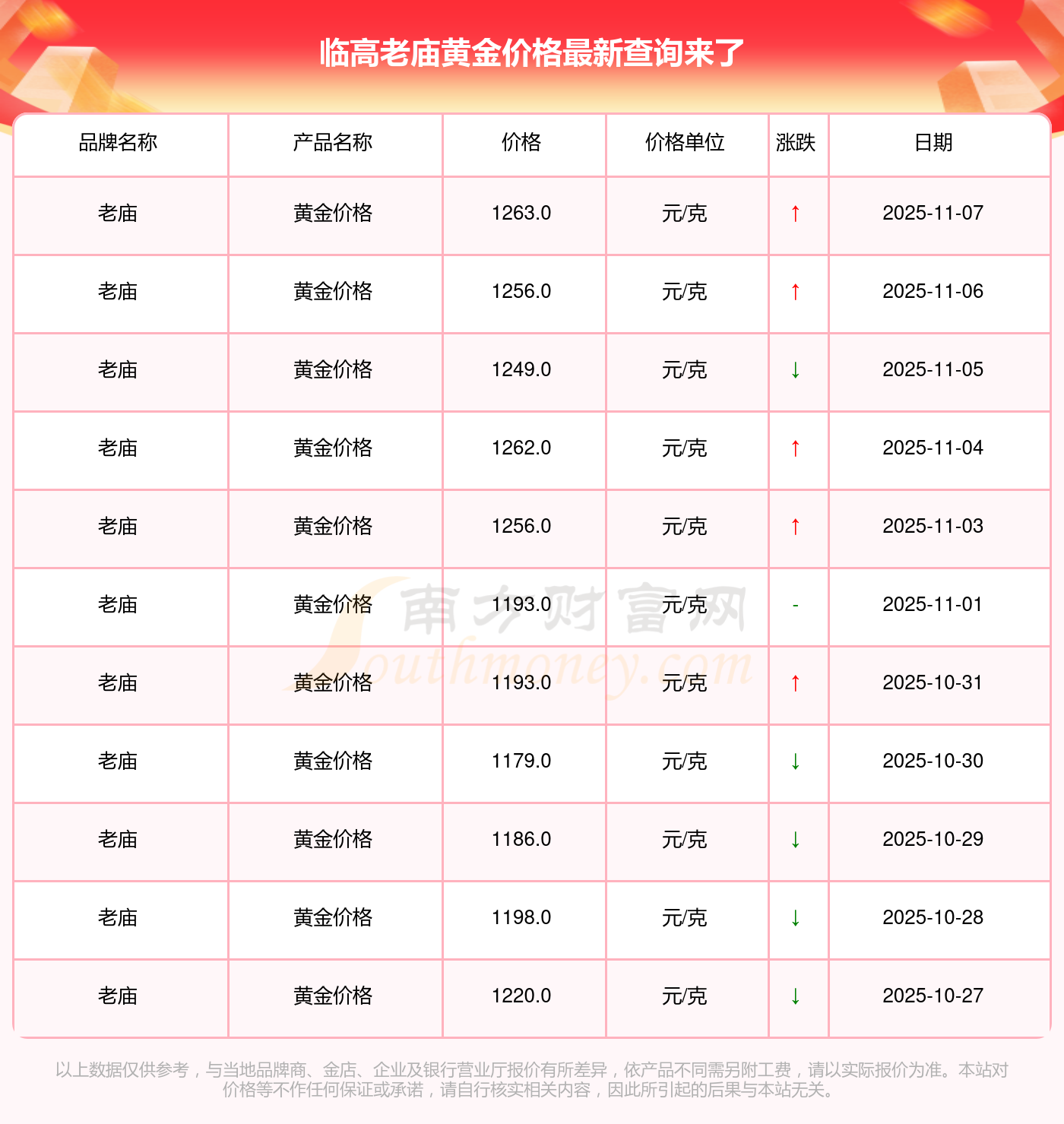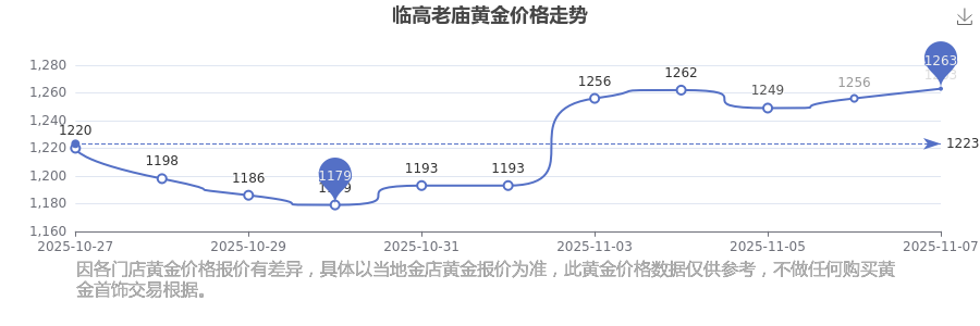 今日臨高老廟黃金價(jià)格:1263.0元/克。