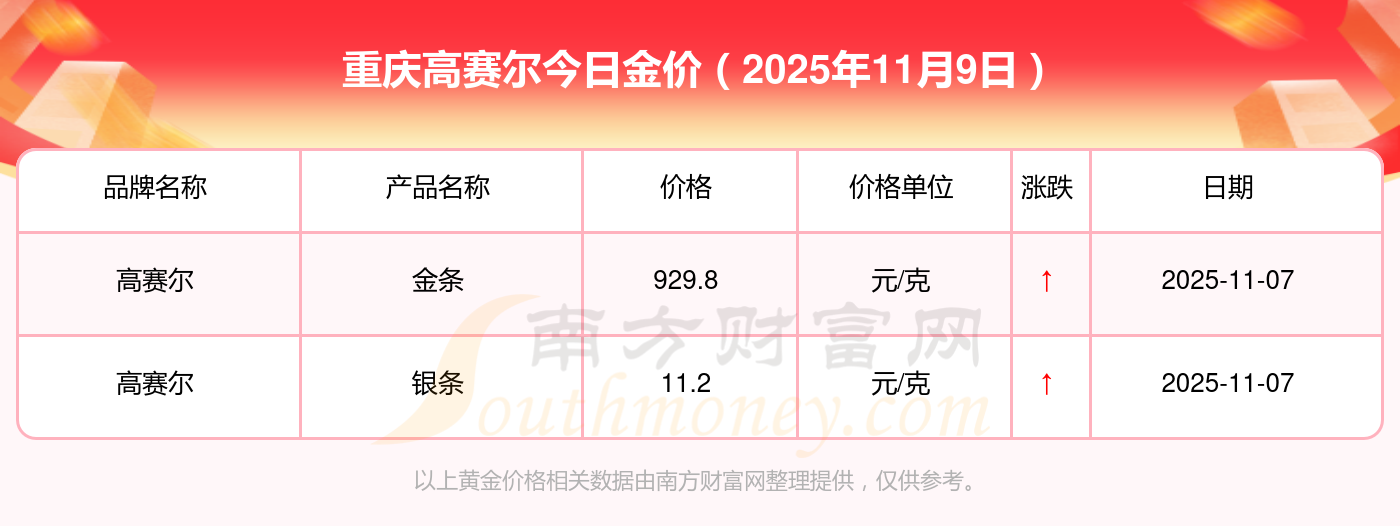 今天黃金價位怎樣呢?現(xiàn)在每克黃金賣多少錢?2025年11月9日重慶高賽爾現(xiàn)在黃金一克要多少錢:銀條價格11.4元/克,黃金價格1263.0元/克,鉑金價格560.0元/克,金條價格(內地)1202.0元/克,金飾價格(內地)1268.0元/克,黃金飾品(香港)44260.0,鉑金飾品(香港)13080.0,金條金價(香港)39960.0,投資金條1243.0元/克,工藝金條1258.0元/克,千足金首飾1248.0元/克。