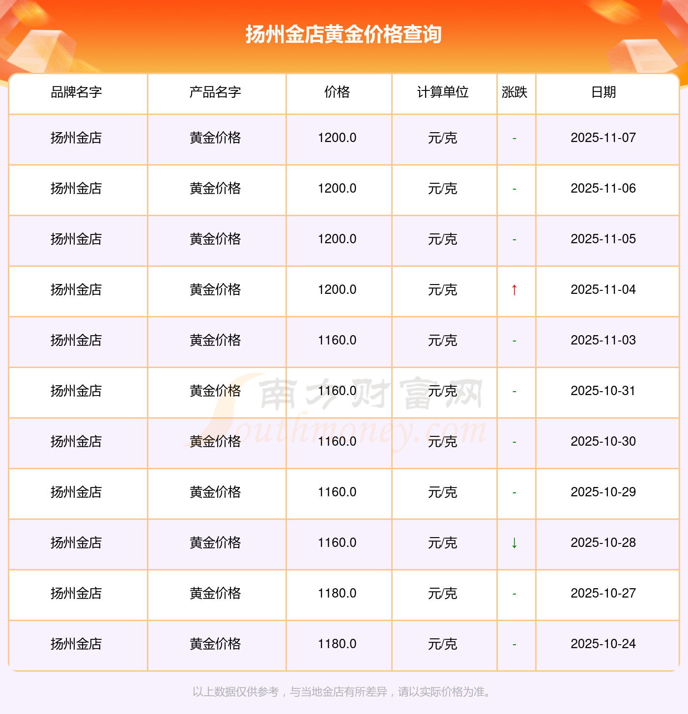 以上數(shù)據(jù)僅供參考,與當(dāng)?shù)亟鸬暧兴町悾堃詫?shí)際價(jià)格為準(zhǔn)。