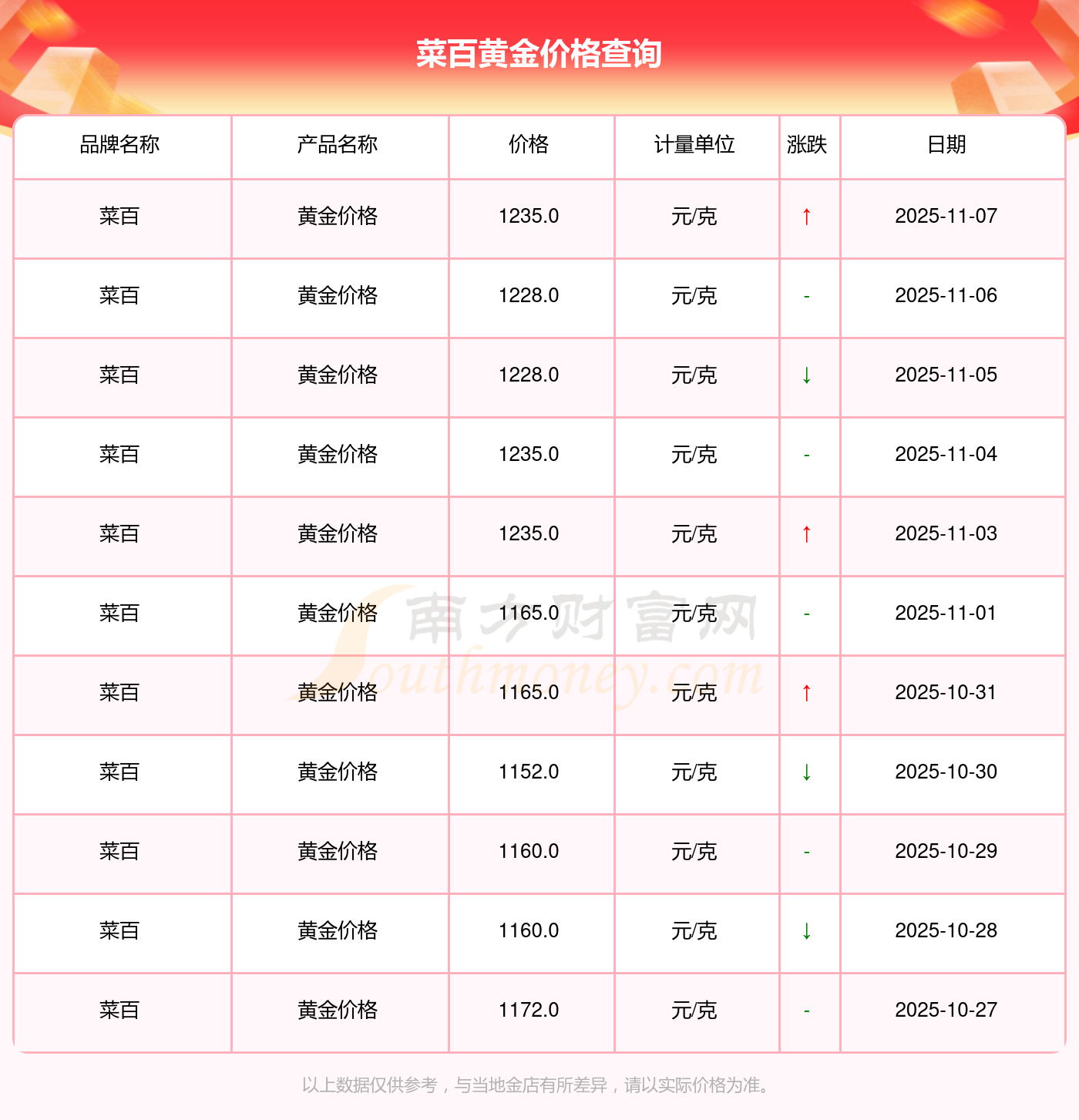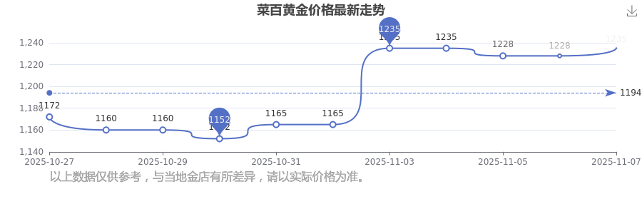 今日菜百 黃金價格最新的市場標價為1235.0元/克。