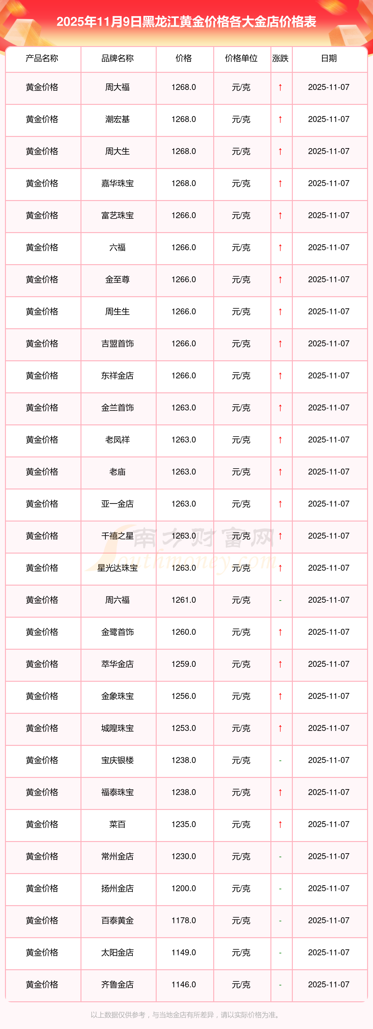 一、 黑龍江各金店黃金價格多少錢1克?黑龍江各金店黃金價格最新詳情