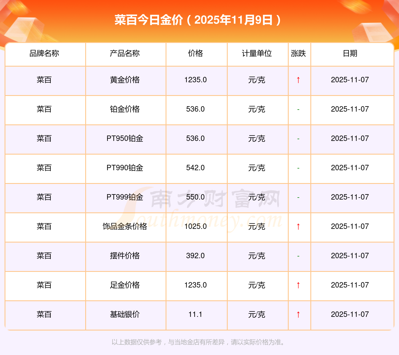 菜百今天的黃金價(jià)值幾何?詳情如下:
