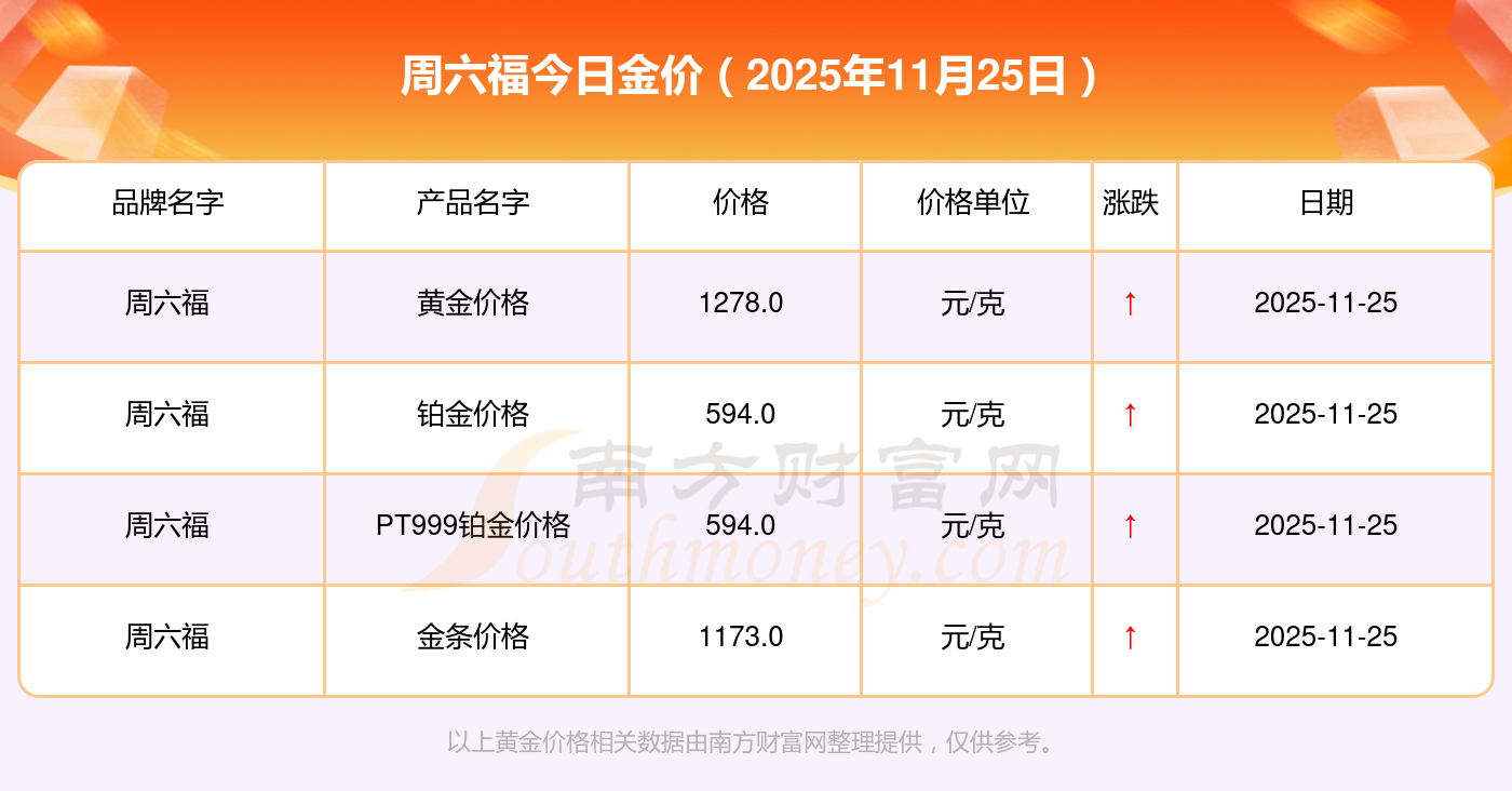 周六福今日金價(jià)的具體數(shù)字是怎樣的?數(shù)據(jù)來(lái)了:黃金價(jià)格1312.0元/克,鉑金價(jià)格627.0元/克,飾品金價(jià)(內(nèi)地)1312.0元/克,黃金飾品(香港)45780.0,鉑金價(jià)格(香港)17900.0,金條價(jià)格(香港)41290.0,金條金價(jià)(內(nèi)地)1148.0元/克,黃金價(jià)格1315.0元/克,鉑金價(jià)格600.0元/克,足金價(jià)格1315.0元/克,黃金價(jià)格1278.0元/克。