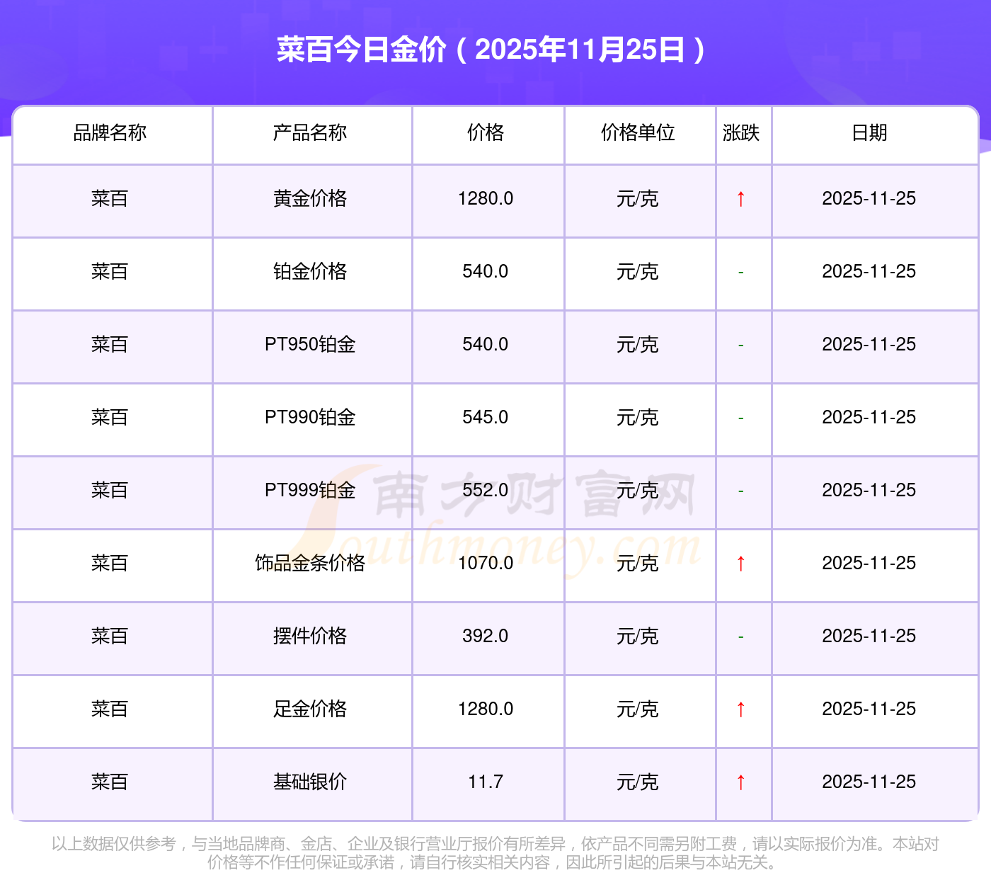 以上數據僅供參考,與當地金店有所差異,請以實際價格為準。