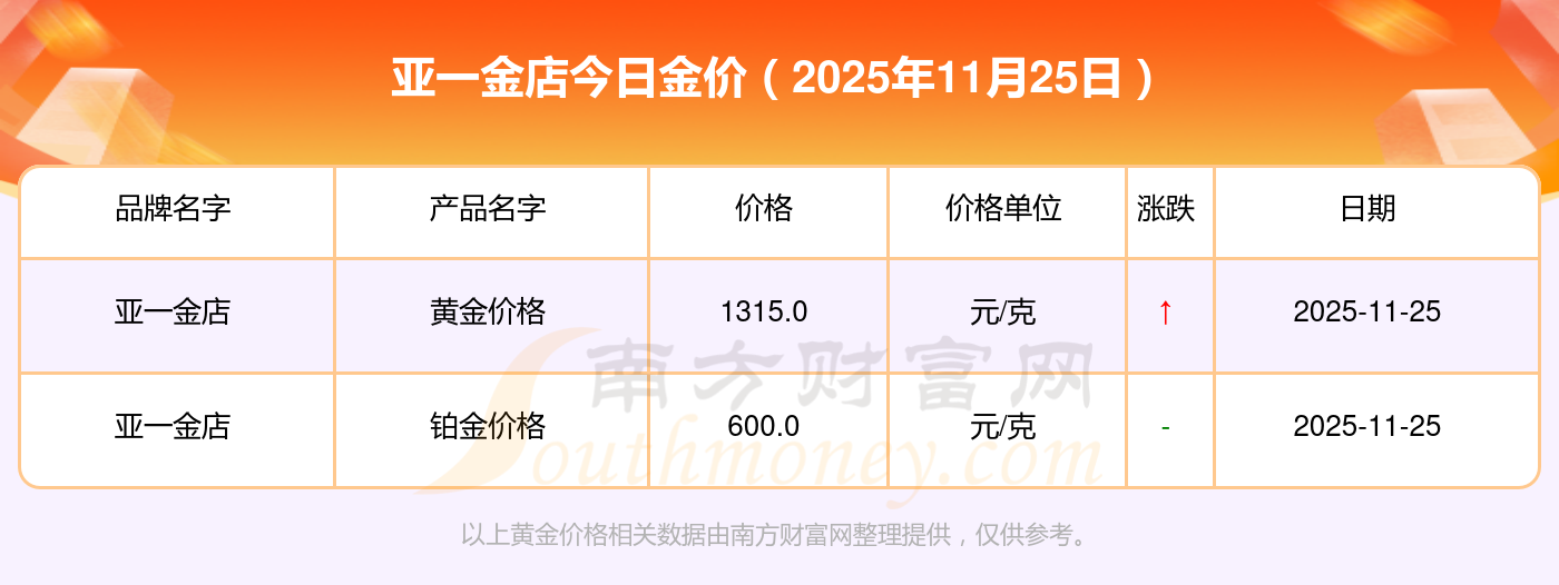 2025年11月25日各大金店鉑金價(jià)格最新價(jià)格:周大福1312.0元/克,周大福627.0元/克,周大福1312.0元/克,周大福45780.0,周大福17900.0,周大福41290.0,周大福1148.0元/克,老鳳祥1315.0元/克,老鳳祥600.0元/克,老鳳祥1315.0元/克,周六福1278.0元/克。