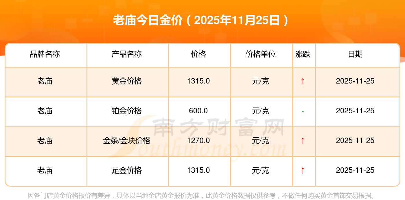 現(xiàn)在老廟黃金價格是多少錢1克_2025年老廟今日金價是多少錢一克,最新老廟查詢,2025年11月25日老廟黃金價格現(xiàn)在每克多少錢?最新老廟黃金價格報價公布,一起來看看吧!