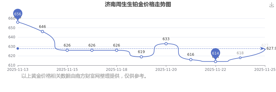 濟(jì)南周生生鉑金價(jià)格在 2025年11月25日為 627.0元/克。