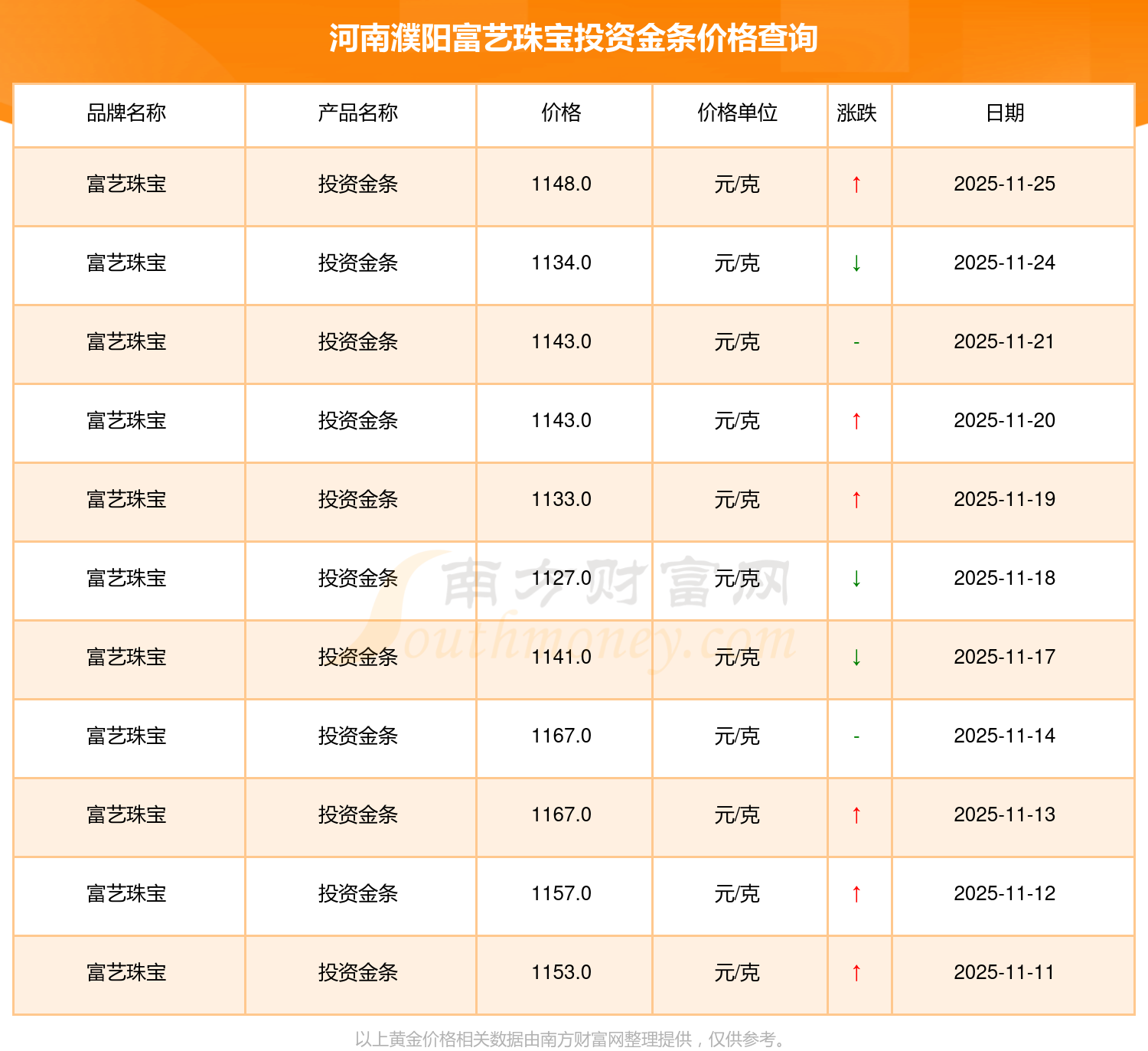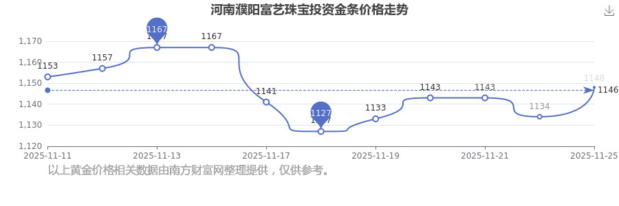 1148.0元/克的投資金條價(jià)格,是河南濮陽富藝珠寶在 2025年11月25日給出的。