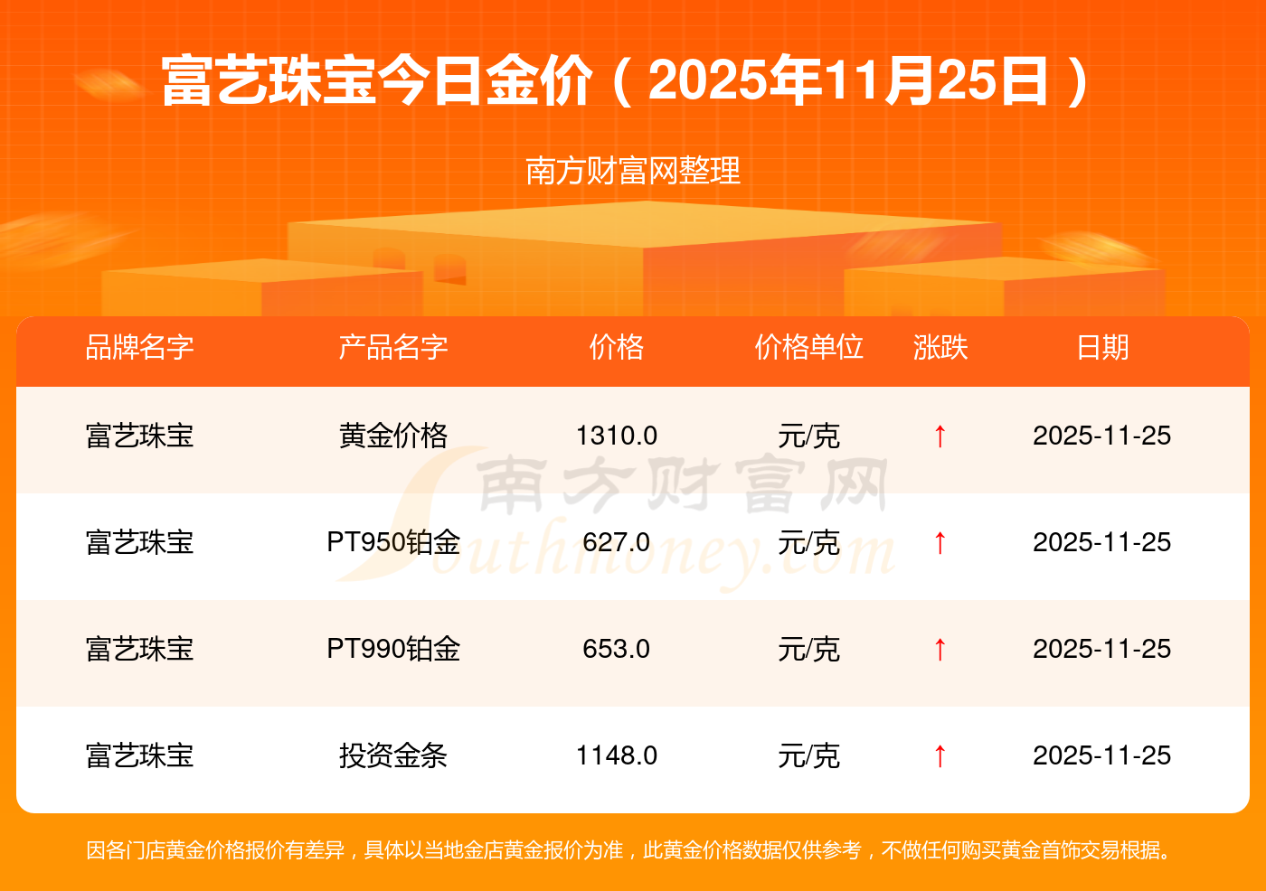 富藝珠寶金價今日價格: