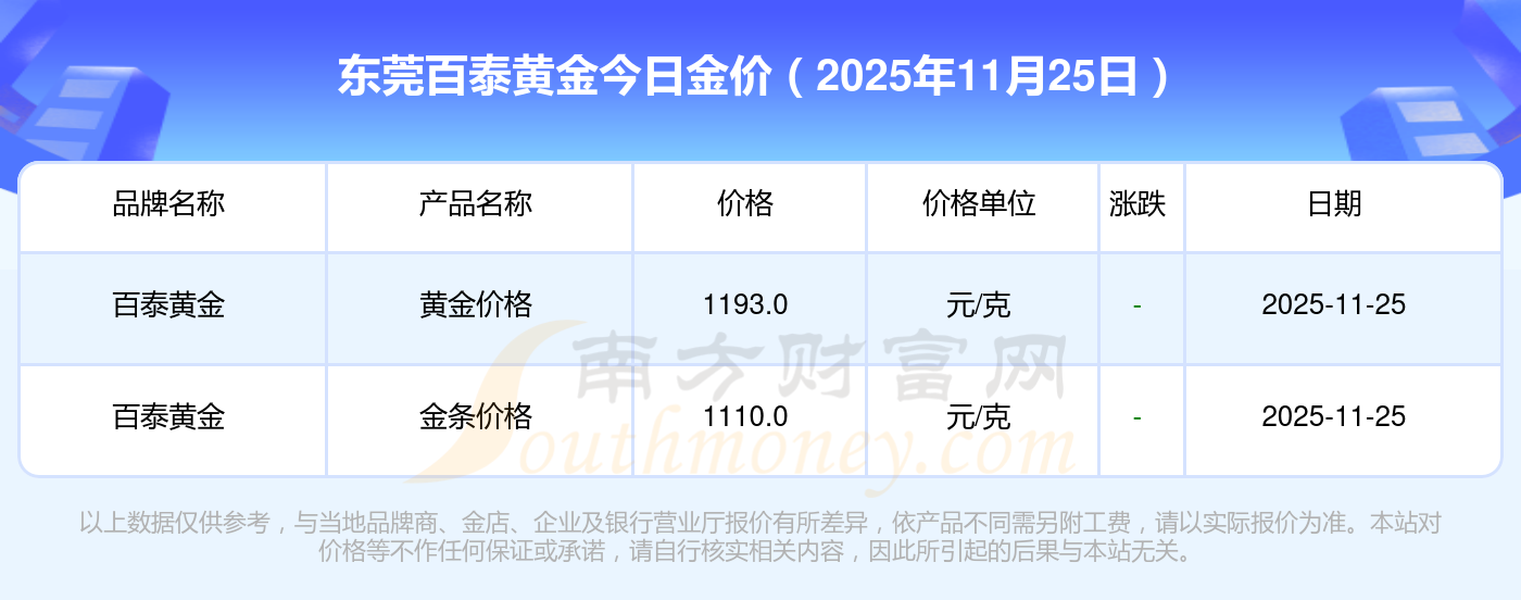 東莞百泰黃金金價今日價格最新_東莞百泰黃金黃金多少錢一克2025年11月25日,隨小編來了解一下詳情。