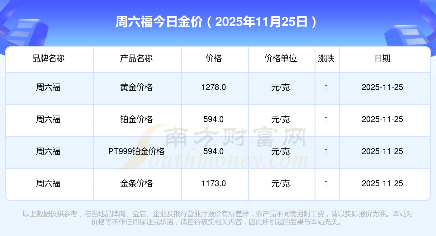 2025年11月25日,周大福、周大福、周大福、周大福、周大福、周大福、周大福、老鳳祥、老鳳祥、老鳳祥、周六福等各大金店品牌鉑金價格今日價格如下:周大福1312.0元/克、周大福627.0元/克、周大福1312.0元/克、周大福45780.0、周大福17900.0、周大福41290.0、周大福1148.0元/克、老鳳祥1315.0元/克、老鳳祥600.0元/克、老鳳祥1315.0元/克、周六福1278.0元/克。