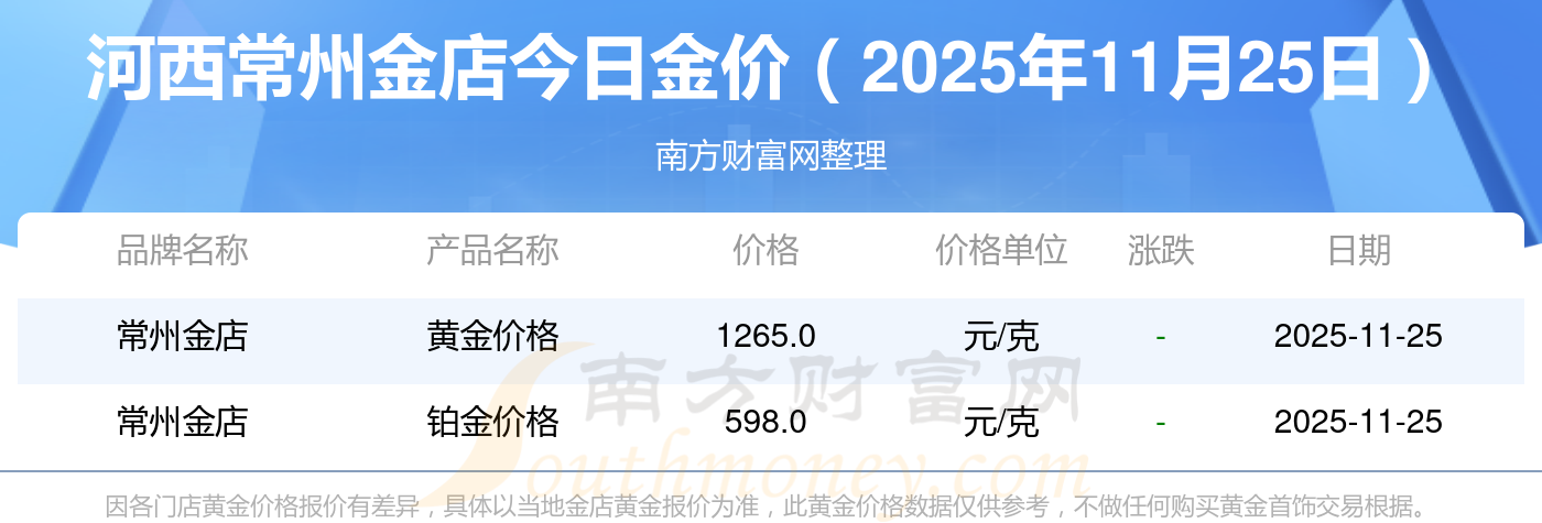 河西常州金店金價今日價格最新_河西常州金店黃金多少錢一克2025年11月25日,隨小編來了解一下詳情。