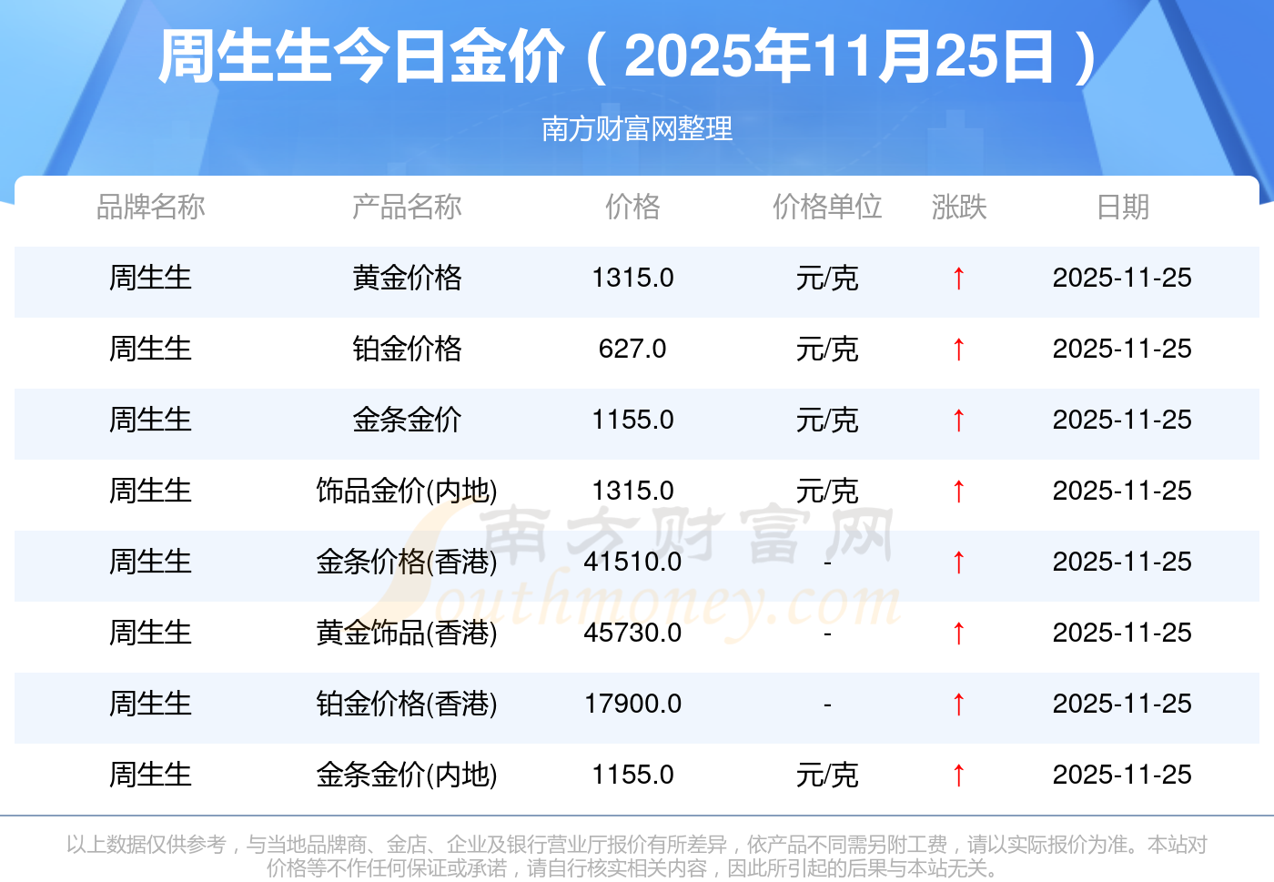 2025年11月25日周生生金條多少錢1克 現(xiàn)在上海周生生黃金價格查詢