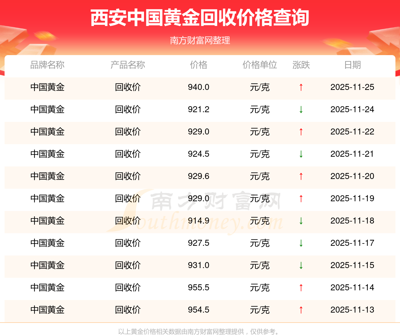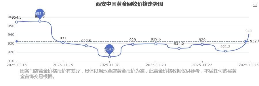 2025年11月25日西安中國(guó)黃金回收價(jià)格為940.0元/克。