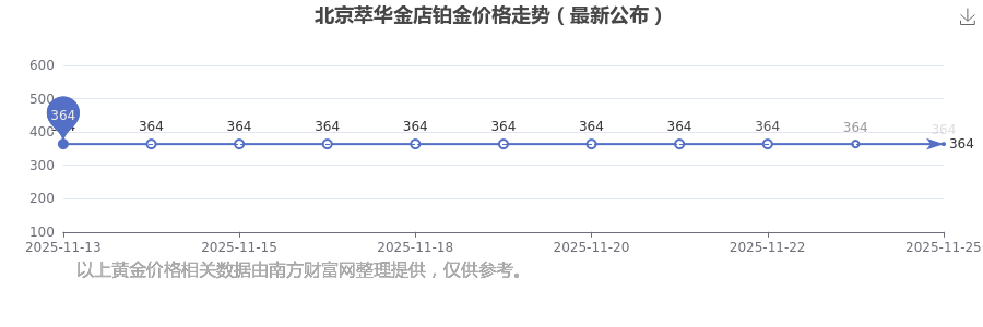 2025年11月25日,北京萃華金店的鉑金價(jià)格標(biāo)價(jià)達(dá)到 364.0元/克。