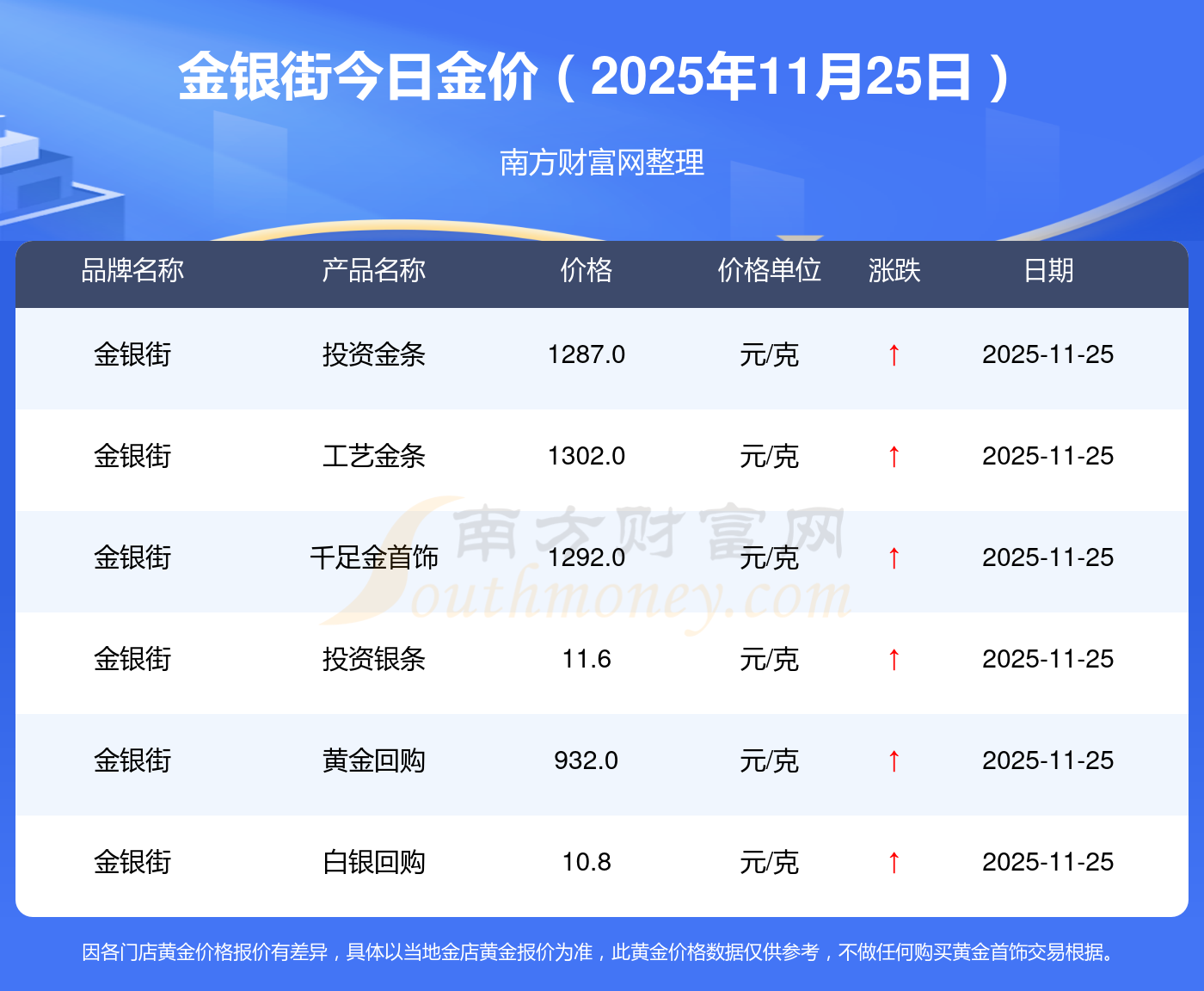 2025年11月25日金銀街金條多少錢1克 現(xiàn)在福州金銀街黃金價格查詢