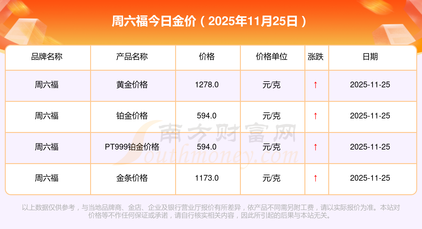 周六福金價今日價格:黃金價格1312.0元/克,鉑金價格627.0元/克,飾品金價(內(nèi)地)1312.0元/克,黃金飾品(香港)45780.0,鉑金價格(香港)17900.0,金條價格(香港)41290.0,金條金價(內(nèi)地)1148.0元/克,黃金價格1315.0元/克,鉑金價格600.0元/克,足金價格1315.0元/克,黃金價格1278.0元/克。