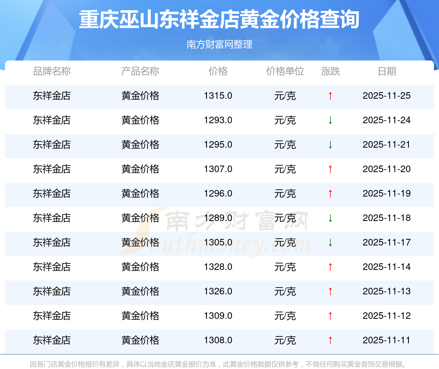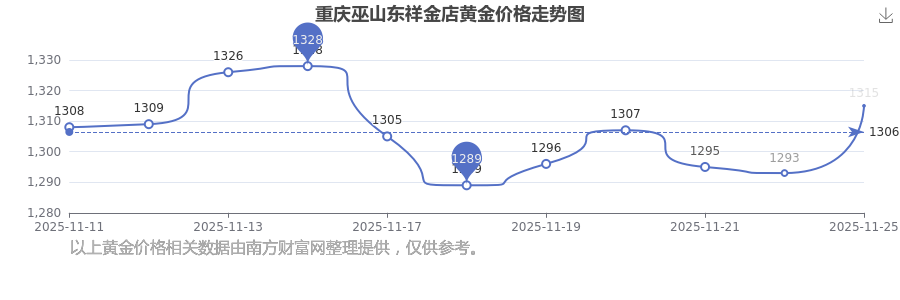 今日(2025年11月25日),1315.0元/克是重慶巫山東祥金店黃金價格的價格標(biāo)準(zhǔn)。