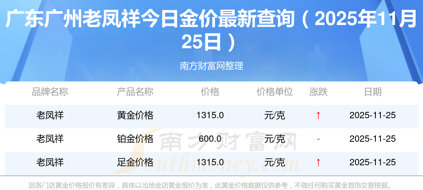 2025年11月25日廣東廣州老鳳祥一克黃金的售價(jià)是多少:黃金價(jià)格1312.0元/克,鉑金價(jià)格627.0元/克,飾品金價(jià)(內(nèi)地)1312.0元/克,黃金飾品(香港)45780.0,鉑金價(jià)格(香港)17900.0,金條價(jià)格(香港)41290.0,金條金價(jià)(內(nèi)地)1148.0元/克,黃金價(jià)格1315.0元/克,鉑金價(jià)格600.0元/克,足金價(jià)格1315.0元/克,黃金價(jià)格1278.0元/克。
