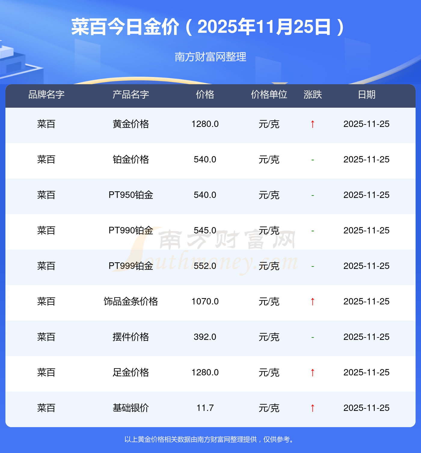 以上數(shù)據(jù)僅供參考,與當(dāng)?shù)仄放粕、金店、企業(yè)及銀行營業(yè)廳報(bào)價有所差異,依產(chǎn)品不同需另附工費(fèi),請以實(shí)際報(bào)價為準(zhǔn)。本站對價格等不作任何保證或承諾,請自行核實(shí)相關(guān)內(nèi)容,因此所引起的后果與本站無關(guān)。