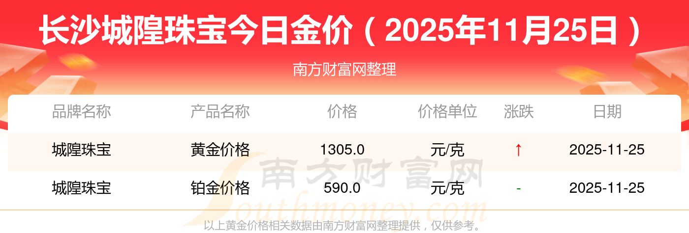 長(zhǎng)沙城隍珠寶黃金價(jià)格表來(lái)了,現(xiàn)在長(zhǎng)沙城隍珠寶黃金價(jià)格是多少錢1克?