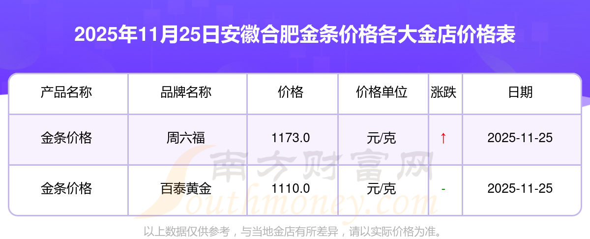 二、2025年11月25日安徽合肥各金店金條價(jià)格最新一覽表