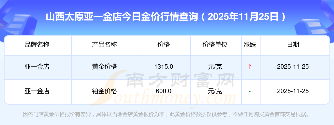 今天黃金價(jià)格行情怎樣?此刻每克黃金售價(jià)多少?山西太原亞一金店金價(jià)今日價(jià)格: