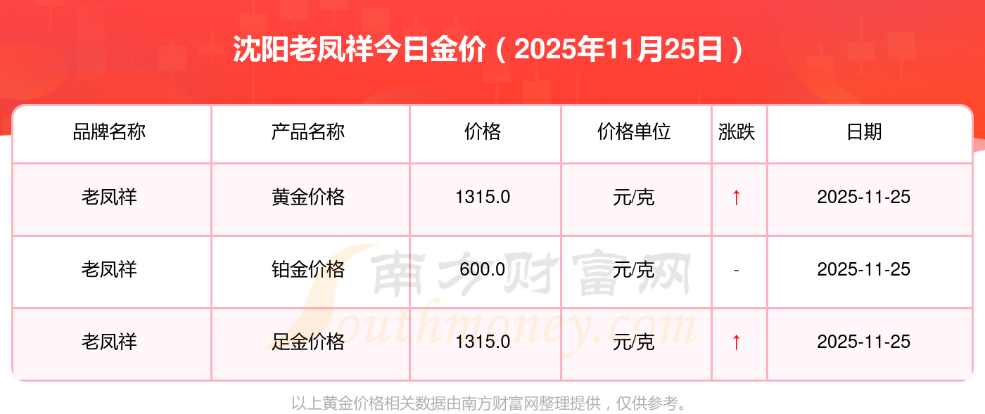 現(xiàn)在沈陽老鳳祥黃金價格表_沈陽老鳳祥黃金多少錢一克(2025年11月25日)