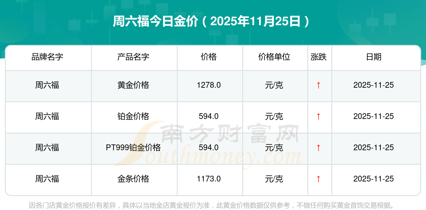 今天是2025年11月25日,周大福、周大福、周大福、周大福、周大福、周大福、周大福、老鳳祥、老鳳祥、老鳳祥、周六福等各大金店品牌金條價格最新價格如下:周大福1312.0元/克、周大福627.0元/克、周大福1312.0元/克、周大福45780.0、周大福17900.0、周大福41290.0、周大福1148.0元/克、老鳳祥1315.0元/克、老鳳祥600.0元/克、老鳳祥1315.0元/克、周六福1278.0元/克。