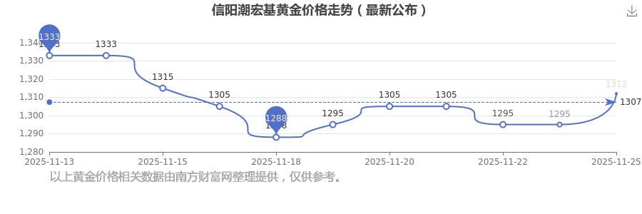 1312.0元/克,此乃信陽潮宏基于 2025年11月25日黃金價格的掛牌價格。