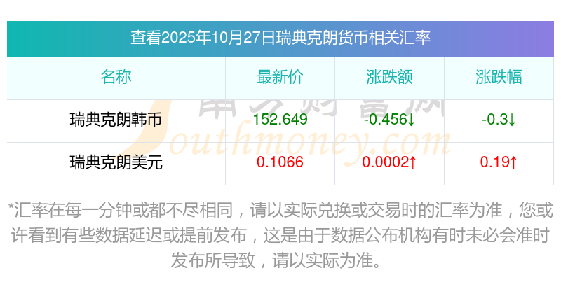 2025年10月27日瑞典克朗相關(guān)匯率查詢