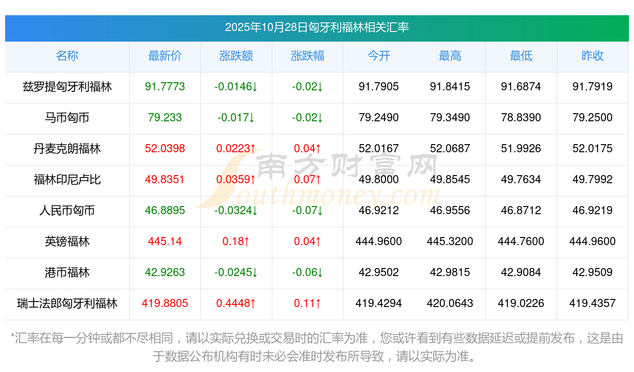 - 福林匯率一覽表 今日福林兌換人民幣換算多少